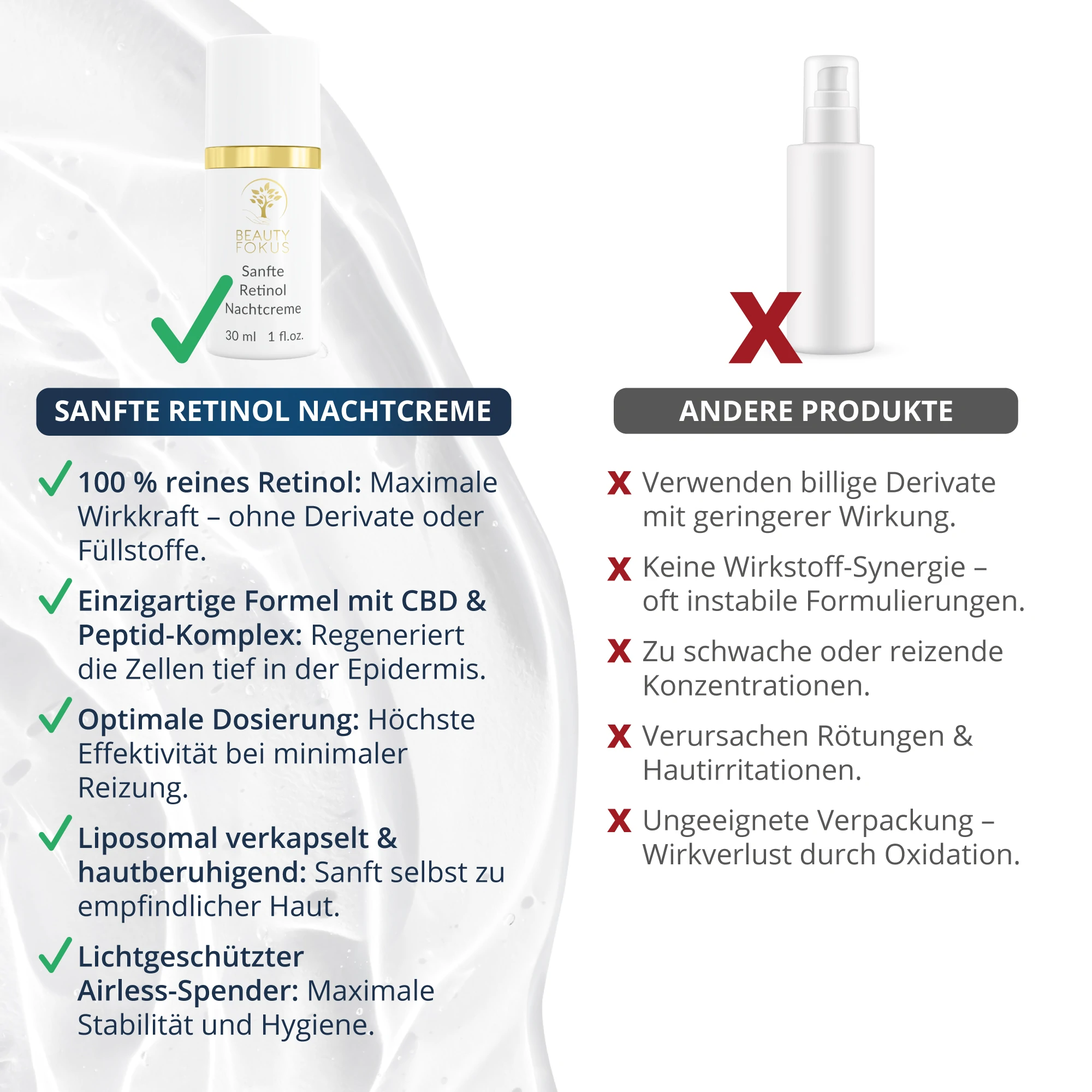 WAS UNTERSCHEIDET BEAUTYFOKUS SANFTE RETINOL NACHTCREME VON ANDEREN RETINOL-PRODUKTEN?